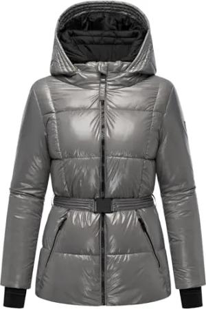 Damen Winterjacke glänzende warme Steppjacke mit Taillengürtel Eisglanz 14 Grey Gr. M