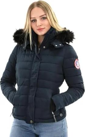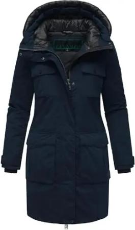 Damen Winterjacke warme Steppjacke mit verstellbarer Kapuze und magnetischen Details Pastellzauber 14 Navy Gr. M