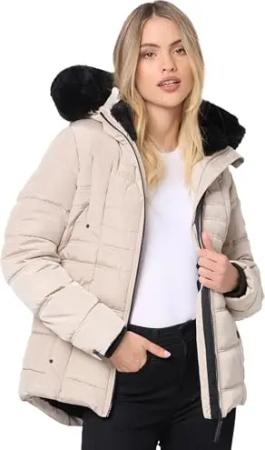 Damen warme Winter Steppjacke mit abnehmbarer Kunstfell-Kapuze Milianaa Olive Gr. S
