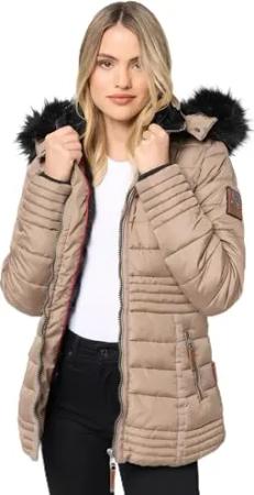 Damen Winterjacke warme Steppjacke mit warmem Fleece-Futter und Abnehmbarer Kapuze Zauberlicht 14 Taupe Grey Gr. L