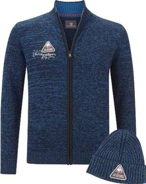 Herren Strickjacke Mit Mütze Apke blau, L - 52/54