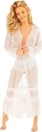 Damen Sentosa Penuar | Farbe: Ecru | Größe: M | Material: Polyester | Spitzenhöschen | Riemen | Petticoat, Negligé, Mesh-Bademantel, Transparente, Unterhantel, Dessous, Nachtwäsche, Sexy