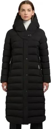 Damen Mantel lange warme Steppjacke mit abnehmbarer Kapuze und magnetischer Abdeckleiste Haya Matt-YM Black Gr. XL