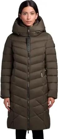 Damen Wintermantel warmer Steppmantel lang mit (abnehmbarer) Kapuze Rachel Matt-YM Old Green Gr. XL