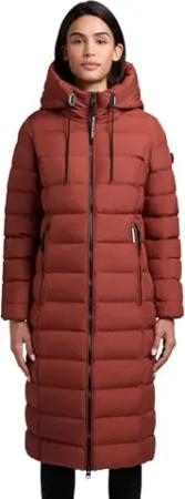 Damen Langer Wintermantel warmer Steppmantel mit großer Kapuze Jilias5-YM Dark Red Gr. L
