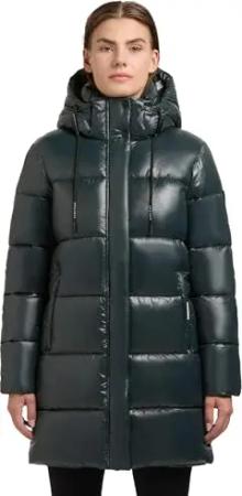 Damen Langer Wintermantel warmer Steppmantel mit schimmerndem Innenfutter und Kapuze Nekar-YM Dark Green Gr. L