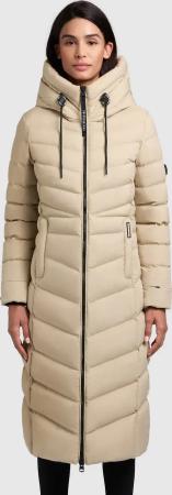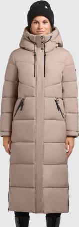 Damen Mantel lange warme Steppjacke mit abnehmbarer Kapuze und magnetischer Abdeckleiste Haya Matt-YM Greige Gr. L