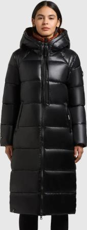 Damen glänzender warmer Winter Steppmantel lang mit abnehmbarer Kapuze Hedd Shiny-YM Black Gr. S