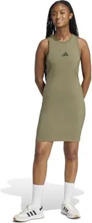 Women's Essentials 3-Stripes Long Racerback Dress, Pure Ruby/Black, S