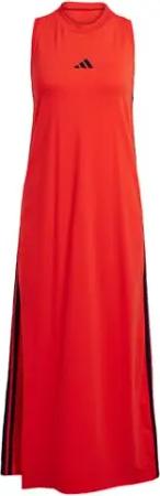 Women's Essentials 3-Stripes Long Racerback Dress, Pure Ruby/Black, XS