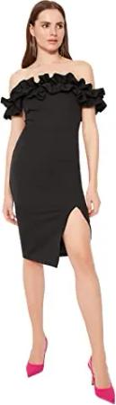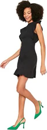 Damen Detailed Ruffle Dress, Schwarz, 32 EU