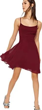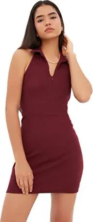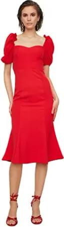 Damen Trendyol Woman Mini Bodycon Karrée-ausschnitt Webstoff Kleid, Rot, 42 EU