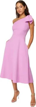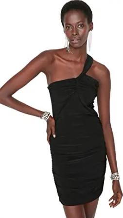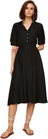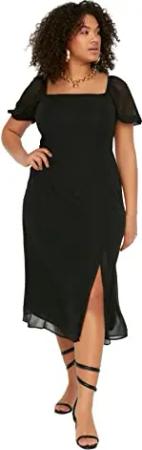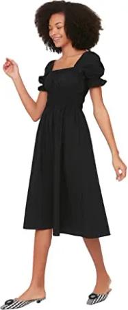 Damen Trendyol Woman Design Maxi Standard Crew Neck Woven Dress Kleid, Schwarz, 42 EU