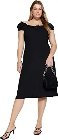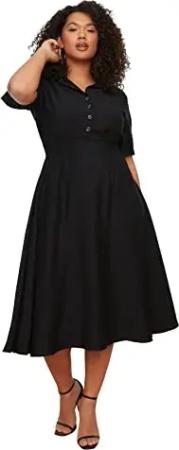Damen Midi A-line Fitted Woven Plus Size Dress Kleid, Schwarz, 68 Größen