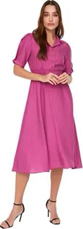 Damen Women line Fitted Woven Dress Midi A-Linie tailliertes gewebtes Plus Size Kleid, Fuchsie, 42 EU