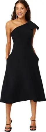Damen, Normale Passform, gewebtes Midi Skater Regular Fit Woven Kleid, Schwarz, 62