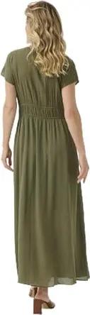 Damen Women's Maxi Dress V-Neck Drawstring Waist Short Sleeves Regular Fit Kleid, Laurel Wreath, 40
