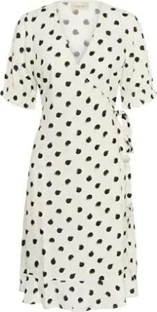 Damen Women's Wrap Dress Short Sleeves Regular Fit V-Neck Knee-Length Belt Kleid, Laurel Wreath Dots, 38