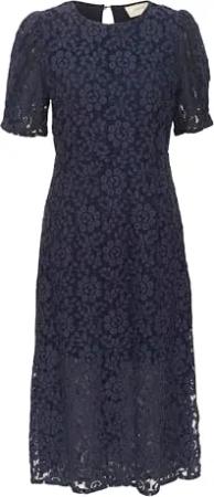 Damen Damenkleid, Spitze, Midi-Länge, Kurze Ärmel, reguläre Passform, runder Hals Kleid, Captain's Blue, 36