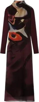 Damen Woman Knit Dress Long Sleeve Lässiges Kleid, Materialausführung:, Groß
