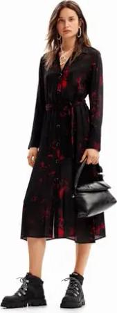 Women's Woman Woven Long Sleeve Dress, Black, Medium