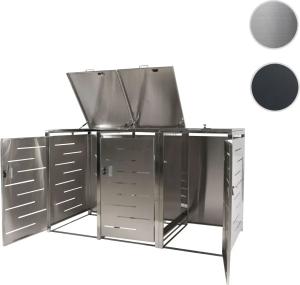 3er-Mülltonnenverkleidung HWC-E83, Mülltonnenbox Mülltonnenabdeckung, erweiterbar 117x197x80cm ~ Edelstahl 68kg