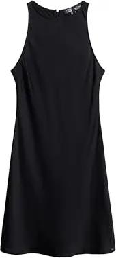 Damen Satin Racer Minikleid Schwarz 40