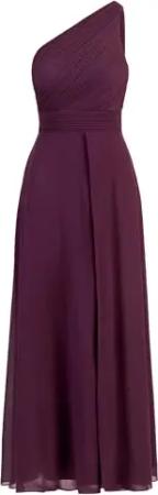 Damen One-Shoulder Abendkleid, Bodenlanges Chiffonkleid, gefütterter Oberteil, Seitenschlitz, trägerloses Partykleid, rückenfreies Festkleid, Elegantes Hochzeitsgastkleid