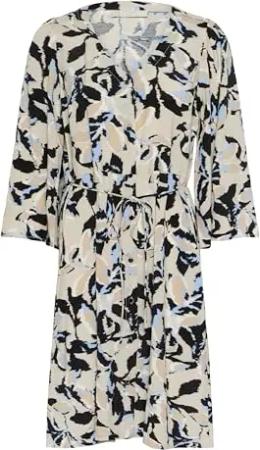 Kleid KApedra 38, Beige/Black/Blue Blurry Leaf