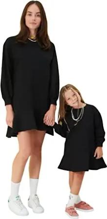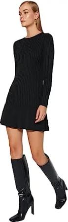 Damen Trendyol Women's Midi Standard High Neck Knitted Dress Kleid, Schwarz, XS EU