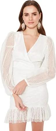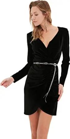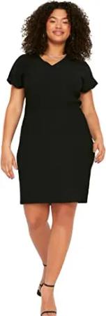 Damen Trendyol Kvinde Petite Mini Ruffle Hem V-hals vævet kjole Dress, Schwarz, 36 EU