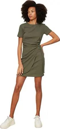 Damen Woman Mini Wrapover Slim fit Knit Dress Kleid, kaki, Medium