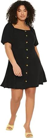 Damen Women line Fitted Woven Dress Mini A-Linie tailliertes gewebtes Plus Size Kleid, Black, 48