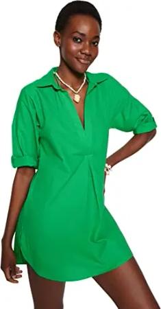 Damen Women Relaxed fit Woven Dress Beachwear Mini Basic Locker geschnittenes Webkleid, Light Green, 62
