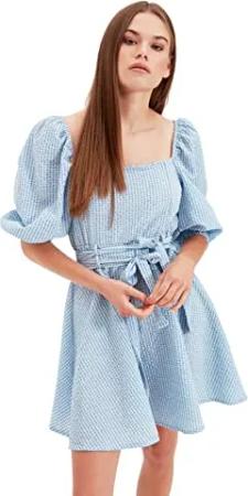 Damen Trendyol Damen Mini Skater Regular Fit Strickkleid Kleid Casual, Blau, L