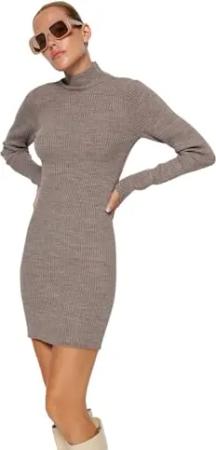 MİLLA Women's Strickwaren Mini Kleid-Schwarz, Body Fitting, Twoaw23El01389 Dress, Mink, S