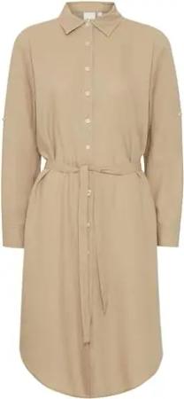 IHLINO DR2 Damen Kleid Blusenkleid Hemdkragen Knöpfe Bindeband Leinenmix Loose fit, Größe:40, Farbe:Natural (161310)