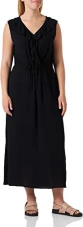 IHMARRAKECH SO DR10 Damen Freizeitkleid Kleid 100% Viskose Midikleid mit Schlitz V-Ausschnitt Ärmellos Regular-Fit, Größe:S, Farbe:Black (194008)