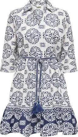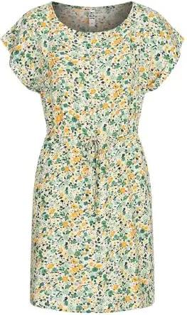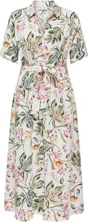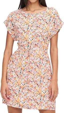 by ONLY Damen Viskose T-Shirt Kleid mit Taillenzug Blumen Muster weiss grün