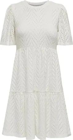 Damen Kurzarm Kleid JDYCarla Cathinka A-Linie mit Lochmuster 15254680 Cloud Dancer L