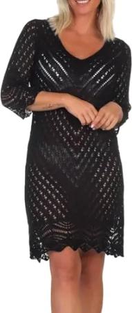 Damen Strickkleid JDYSun 3/4 V-Neck gehäkeltes Sommerkleid 15324539 Black M