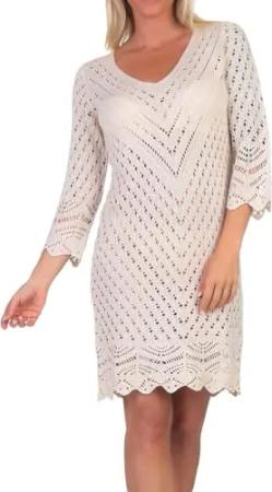 Damen Strickkleid JDYSun 3/4 V-Neck gehäkeltes Sommerkleid 15324539 Tapioca L