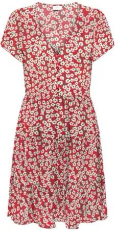 Sommerkleid V-Ausschnitt, Kurzarm, Gemustertes Knopf Design, Farben:Rot, Größe:M