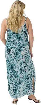 Damen Plus Size Women's Maxi Dress Spaghetti Straps Relaxed Fit V-Neck Kleid, Teal Leopardenmuster, 50 Größen