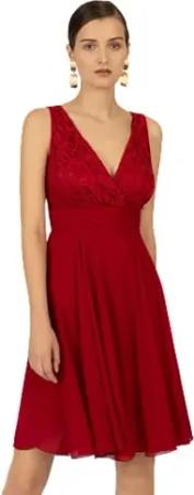 Women's Abendkleid aus hochwertigem Material in femininem Stil Special Occasion Dress, Burgunderrot, 36