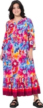 Damen rot-schwarzes Maxikleid mit Batik-Muster 4XL