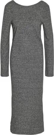 Damen Kleid Lang Rundhals Langarm Regular Fit Bequem Elegant, Farben:Dunkelgrau, Größe:S