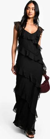 Chiffon-Maxikleid Mit Rüschen - Black - 34, Black