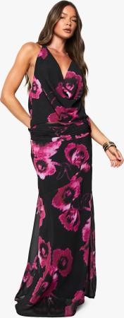 Florales Chiffon-Maxikleid Mit Tiefem Ausschnitt - Black - 34, Black