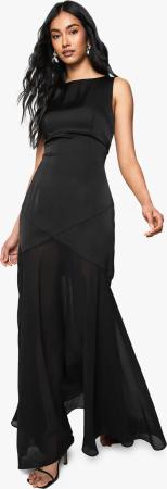 Maxikleid Aus Satin Und Chiffon - Black - 38, Black